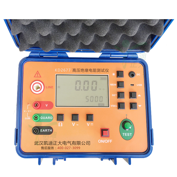 KD2677高壓絕緣兆歐表又名高壓絕緣電阻表,用于絕緣電阻的測試。本儀表具有大屏幕LCD灰白背光顯示、數(shù)據(jù)存儲、數(shù)據(jù)查閱、報警、自動放電、充電、自動關(guān)機等功能。同時還具備測量直流電壓交流電壓吸收比和極化指數(shù)功能。整機美觀高檔,量程寬廣,分辨率高,操作便捷,攜帶方便,準確、可靠、性能穩(wěn)定,輸出功率大,抗干擾能力強。