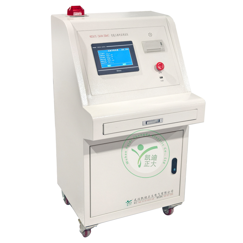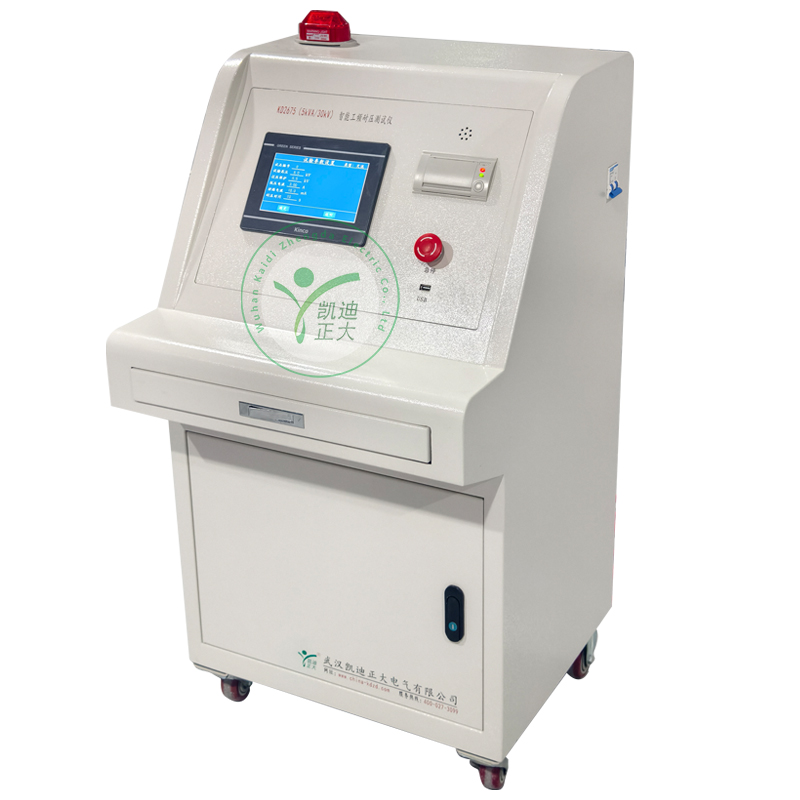 KDYDJ-5kVA/30kV 智能工頻耐壓試驗裝置是根據國家行業試驗標準而設計的試驗設備,其安全可靠、功能強、使用方便、維護簡單。主要用于對各種電器產品、電氣元件、絕緣材料等進行規定電壓下的絕緣強度試驗,以考核產品的絕緣水平,發現被試品的絕緣缺陷,衡量過電壓的能力。該系列產品是電力運行相關部門、電工電器制造企業、冶金、煤礦、電氣化鐵路相關部門、科研單位及高等院校等需要耐壓試驗設備的常用產品。