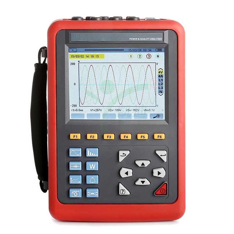 KDZD5000電能質量分析儀是我公司精心研制的現(xiàn)場測試的三相、多功能、智能化、人機操作簡潔的綜合型測試儀器。具有容易使用,超大液晶彩屏顯示,高分辨率,中英文雙語操作界面,防振結構外殼等特點。可同時測量4路電流(ABC三相及中性線電流),4路電壓(ABC三相電壓及中性線對地電壓)、電流電壓的峰值、一段時間內的最大最小值、三相不平衡度、短時電壓閃變、變壓器K因數(shù)、有功功率、無功功率、視在功率、功率因數(shù)、位移功率因數(shù)、有功電能、無功電能、視在電能、諧波比、總諧波失真度等;顯示電流電壓的實時波形、相量圖、諧波比柱形圖;動態(tài)捕捉電壓電流瞬時變化,監(jiān)測啟動電流,監(jiān)測各電力參數(shù)并生成告警列表,長時間記錄測試數(shù)據(jù)并生成趨勢曲線圖等功能。