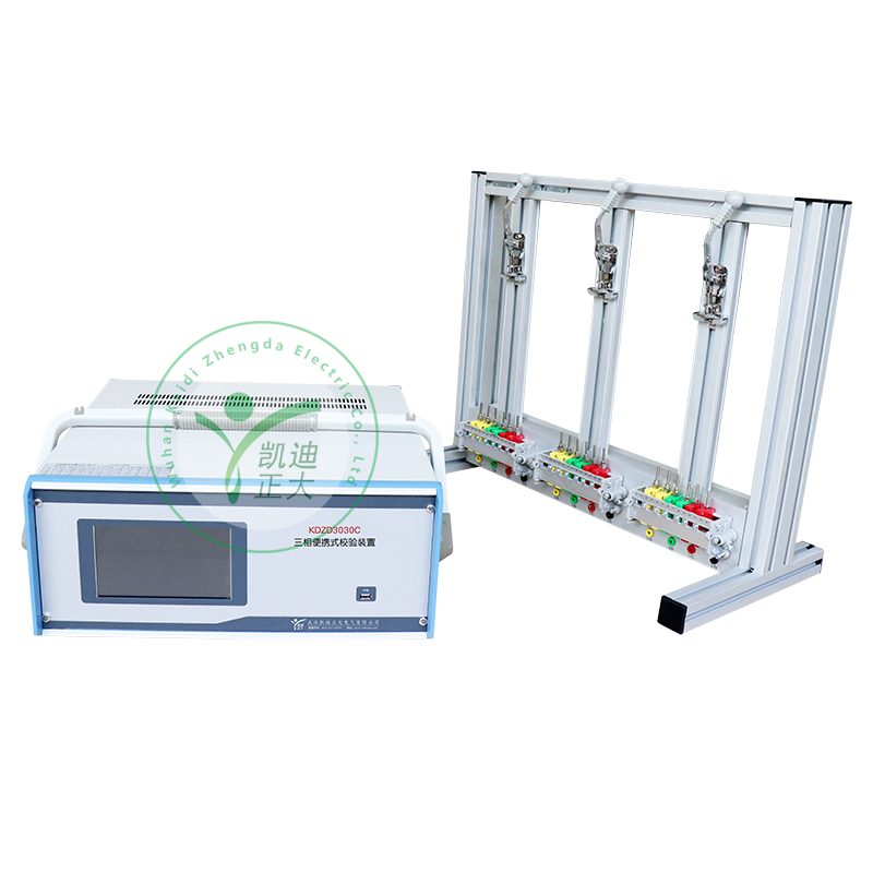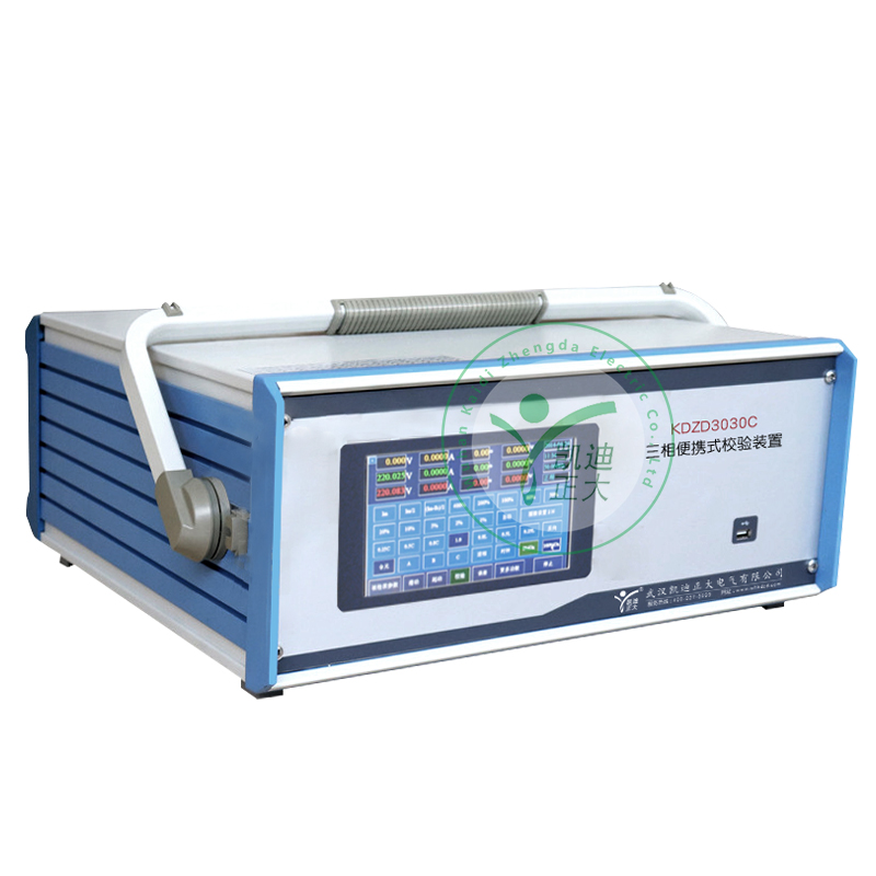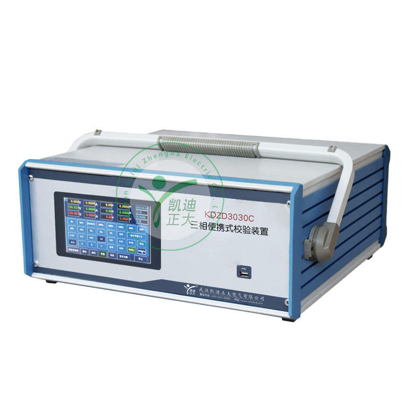 KDZD3030C三相便攜式校驗裝置采用鋁合金機箱,配合可拆卸鋁合金掛表架,適用于1.0級及以下各種三相電能表的檢驗。