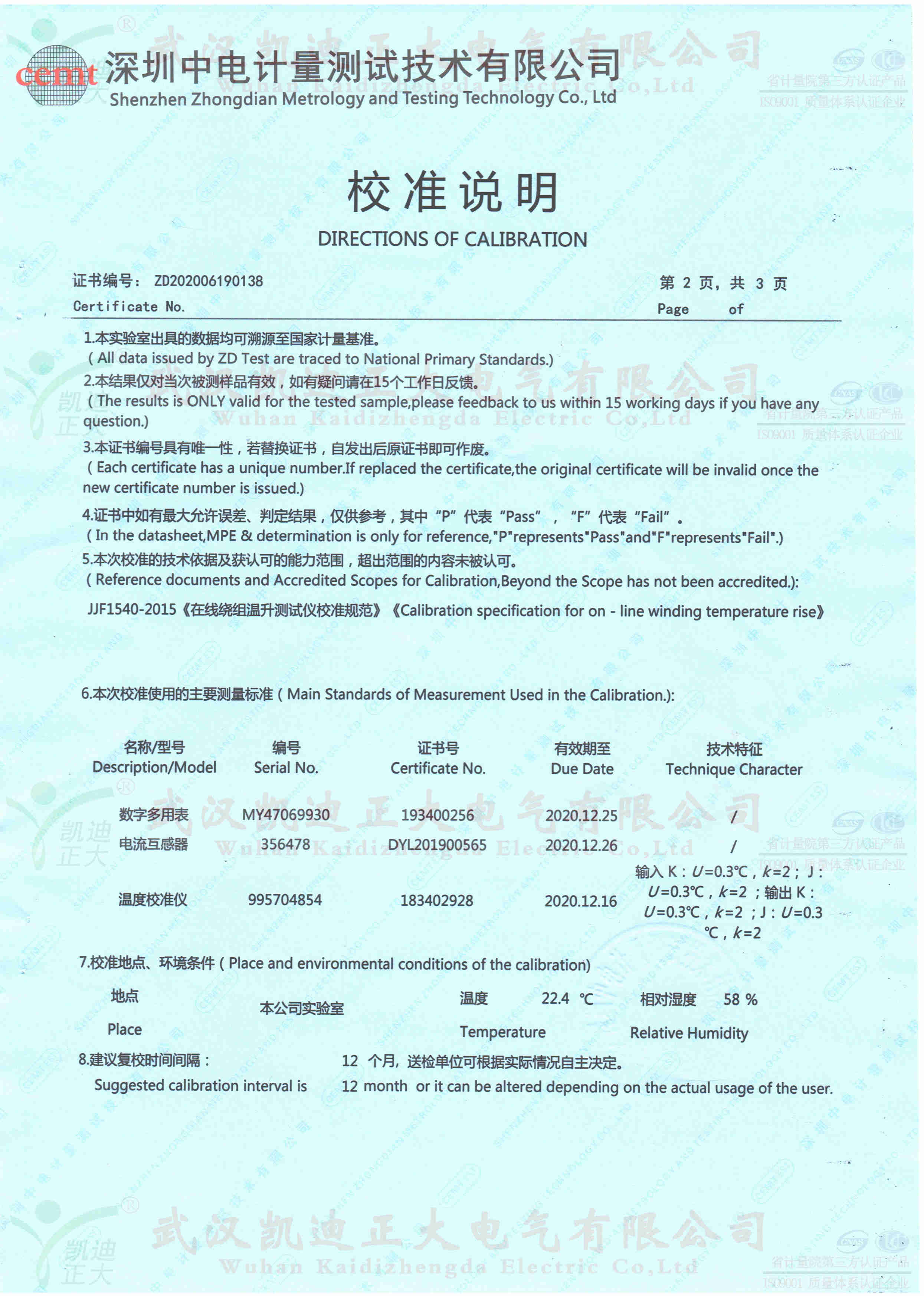 這次擔任我司檢測服務的是深圳中電計量測試技術公司,KDSL-82溫升試驗裝置2000A,證書編號:ZD202006190138,校準證書合格。
