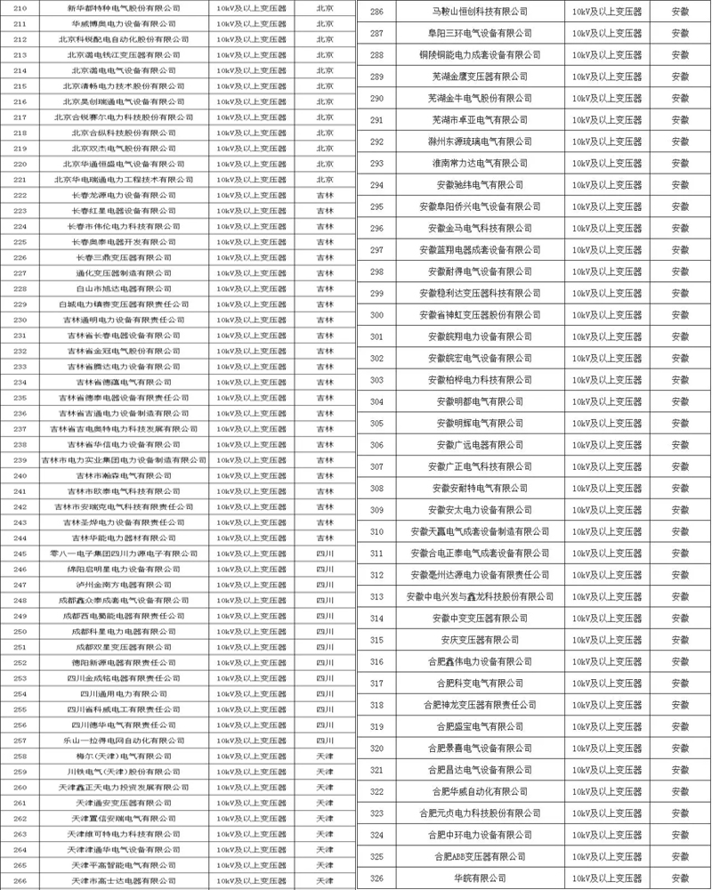 附各省市電力公司符合此次核實(shí)標(biāo)準(zhǔn)的變壓器企業(yè)名單: