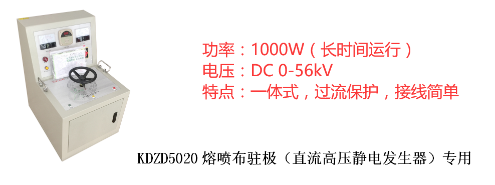 KDZD5020輸出電壓50kV/120kV可選(其他電壓可定制);輸出電流80mA(熔噴無(wú)紡布加靜電典型應(yīng)用)