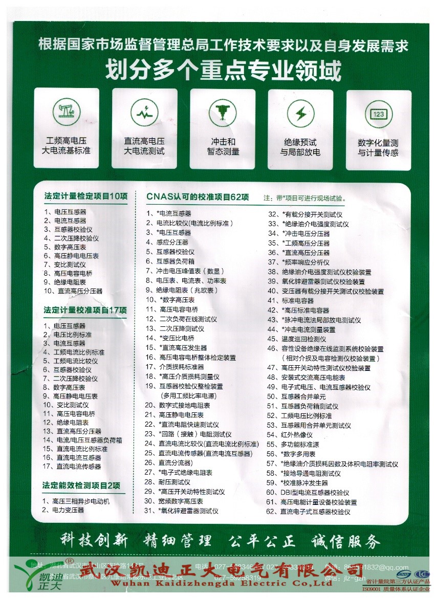 國家高電壓計(jì)量站CNAS認(rèn)可的校準(zhǔn)項(xiàng)目