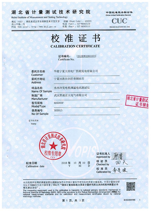 通過《直流數字電流表試行檢定規程》(JJG 598-1989)《泄漏電流測量儀(表)檢定規程》(JJG 843-1993),武漢凱迪正大電氣有限公司生產的水內冷發電機泄漏電流測試儀:輸出電壓:80KV輸出電流:300mA輸出功率:24KW符合國家電力試驗標準,精度符合國家能源局發電機水內冷耐壓試驗需求。