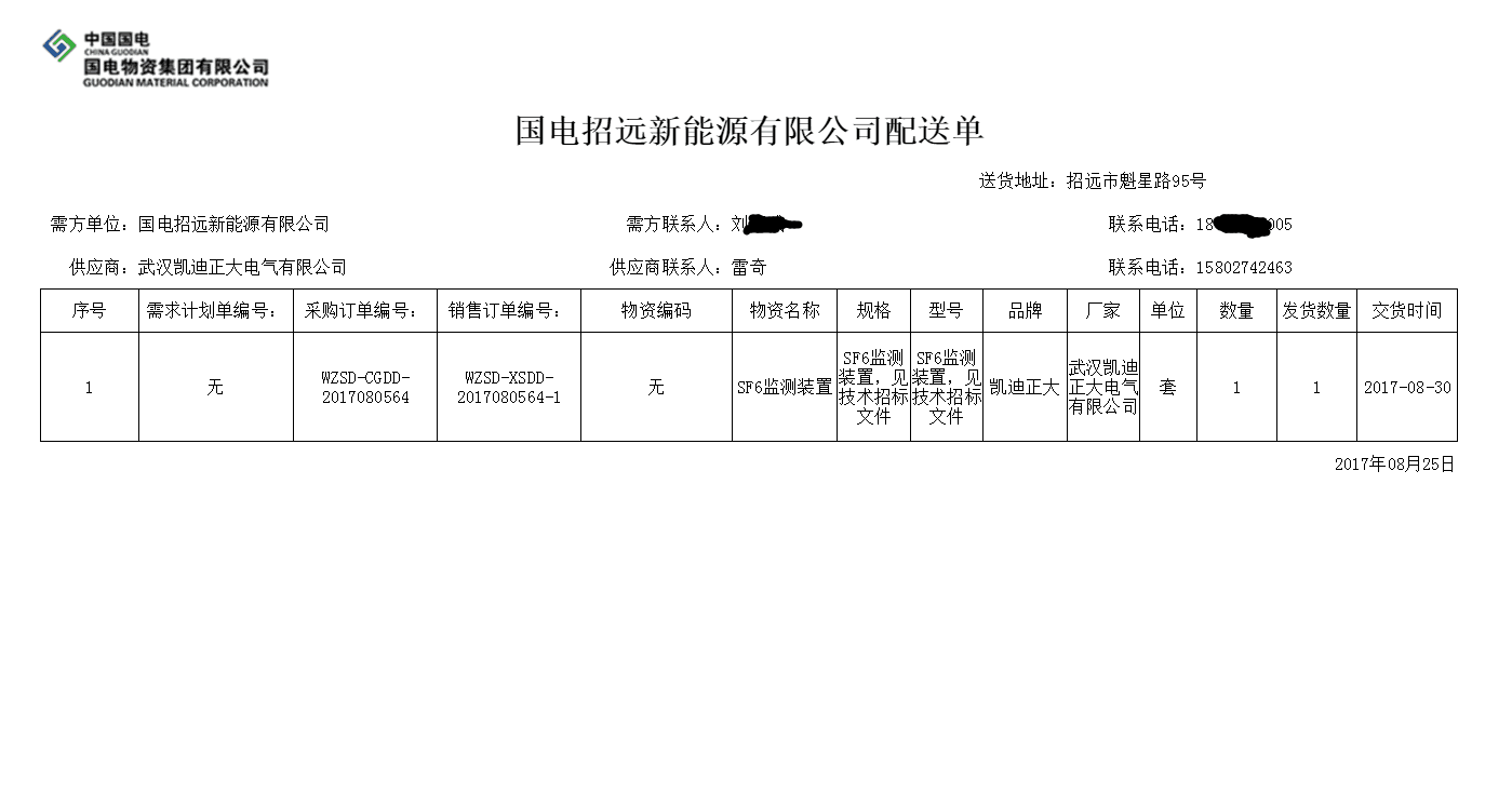 近期江城持續(xù)高溫,酷暑難耐。但絲毫沒有影響凱迪正大同仁的工作熱情,八月中旬,凱迪正大在國電招遠(yuǎn)新能源有限公司《35KV配電室加裝SF6監(jiān)測(cè)裝置項(xiàng)目》招標(biāo)采購中,憑借著良好的市場(chǎng)信譽(yù),可靠的產(chǎn)品質(zhì)量成功拿下此標(biāo)的。詢價(jià)單編號(hào):WZSD-2017080285