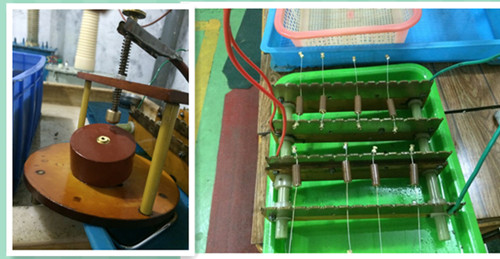 公司生產線主要檢驗設備:電阻計(最大量程1013歐)、 局放儀、低壓電橋 、高壓電橋(萬分之一精度)、高溫箱、負溫箱、150kV50kvA工頻耐壓實驗裝置以及沖擊電壓發生器、絕緣子密封實驗裝置、KDHG-A伏安特性試驗裝置等,具備電容器、電阻器等性能檢測的全部檢驗儀器設備。遵循通過ISO9001質量體系認證。