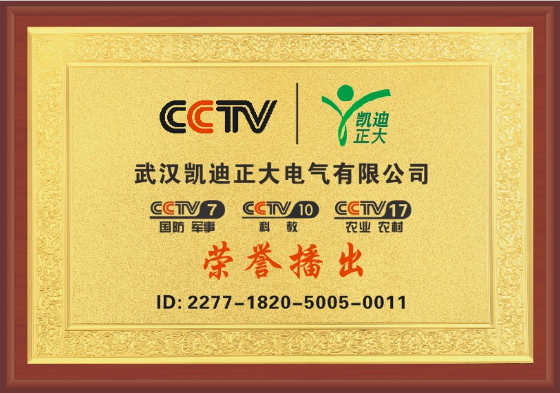 2022年4月,武漢凱迪正大電氣有限公司品牌廣告正式登陸中央電視臺CCTV-7國防軍事頻道、CCTV-10科教頻道及CCTV-17農業農村頻道,向全國觀眾展示武漢凱迪正大的實力與信念。