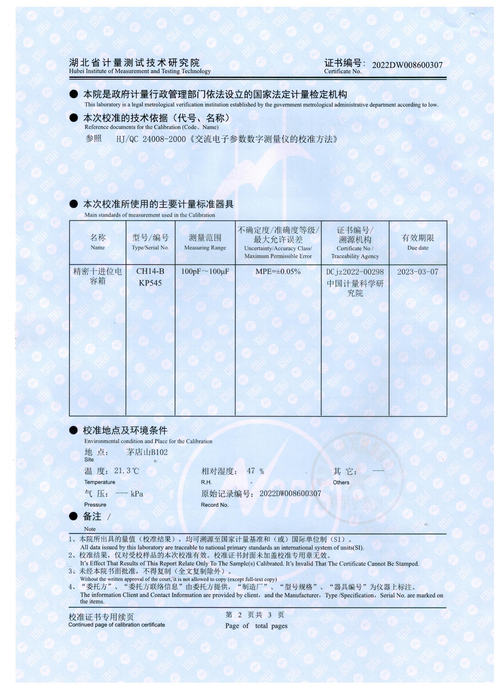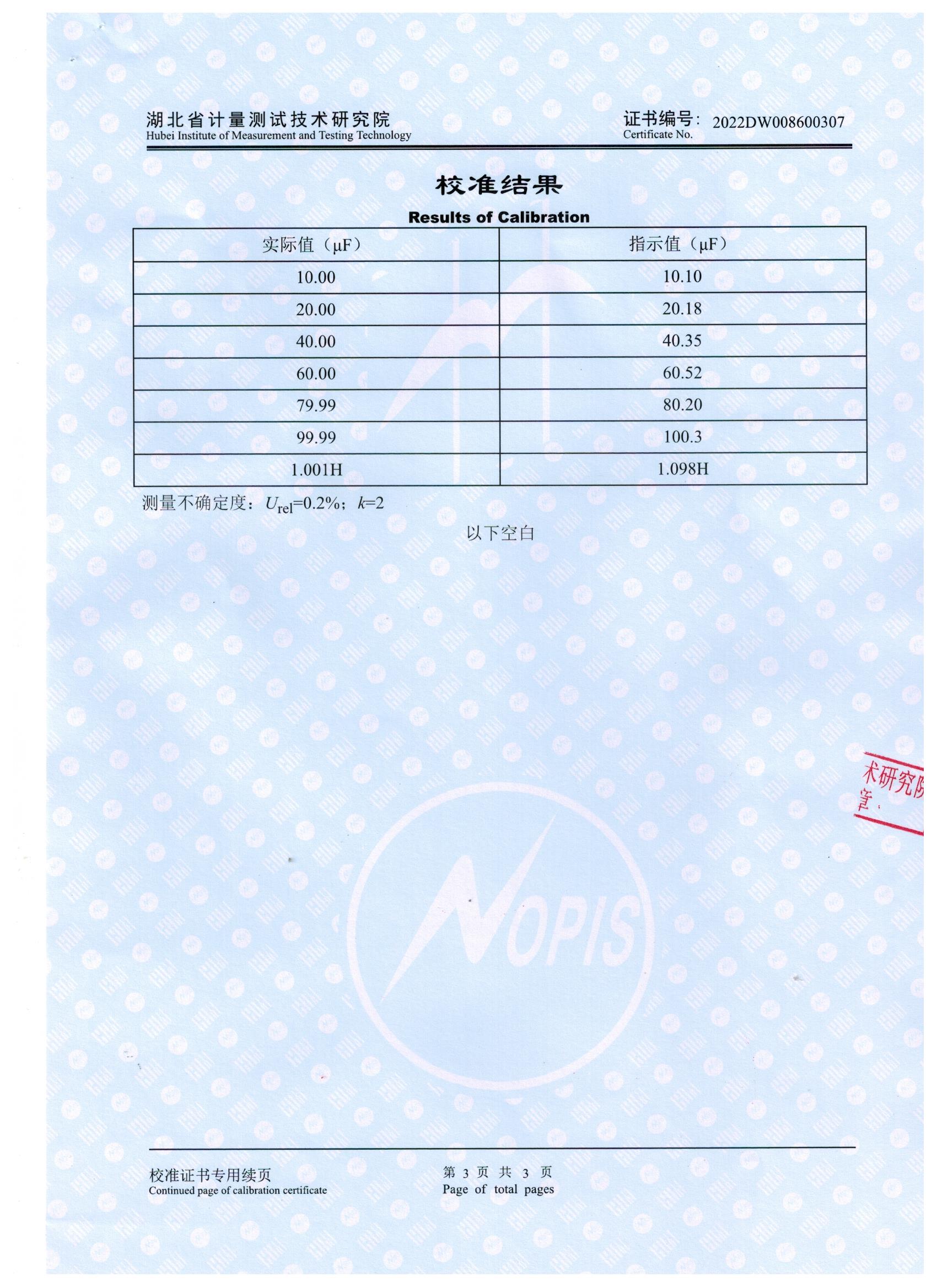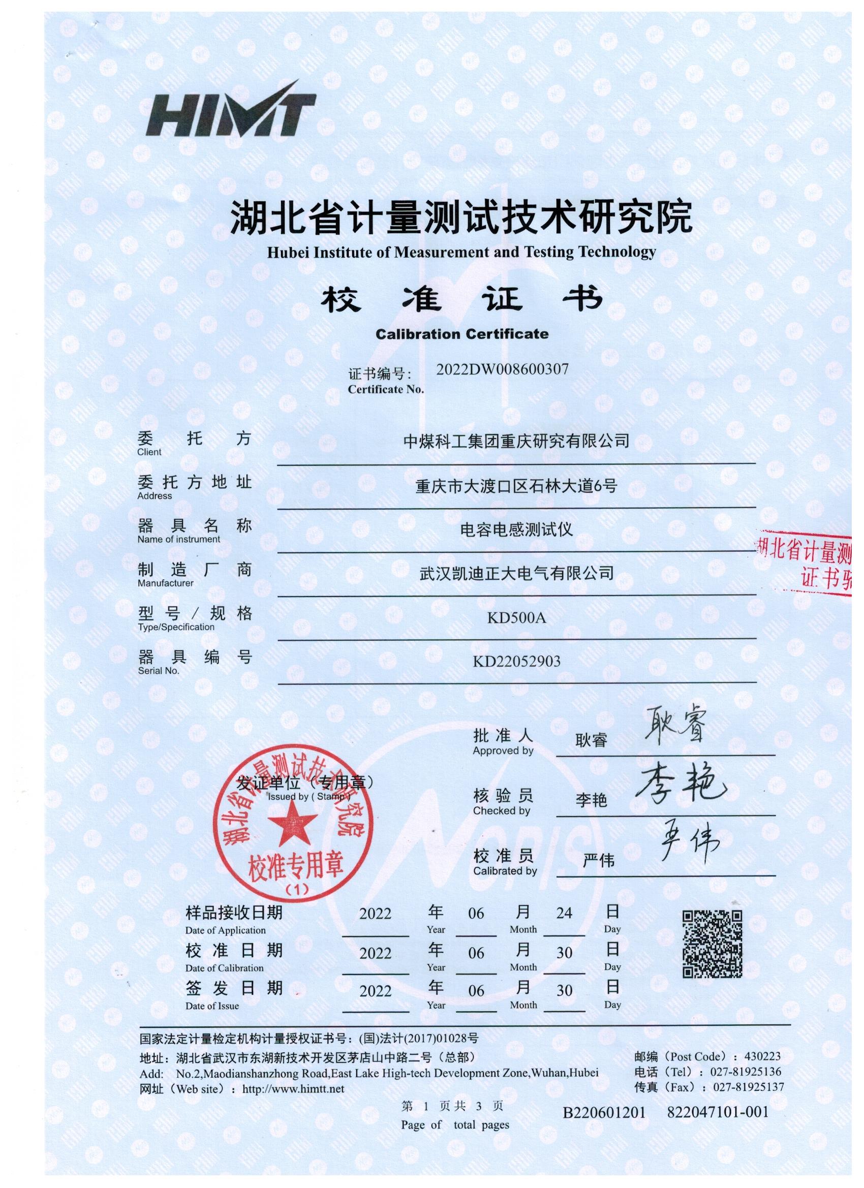 在雙方簽署采購合同后,我司技術人員立即將產品送往湖北省計量測試技術研究院進行檢測,經過7個工作日的時間,產品順利的通過檢測并取得了校準報告,報告顯示產品所測參數十分準確,測量不確定度Urel=0.2%,幾乎符合客戶要求,在取得證書后,我司銷售人員立即將報告發送給中煤科工集團重慶研究有限公司采購人員,并著手準備發貨工作。