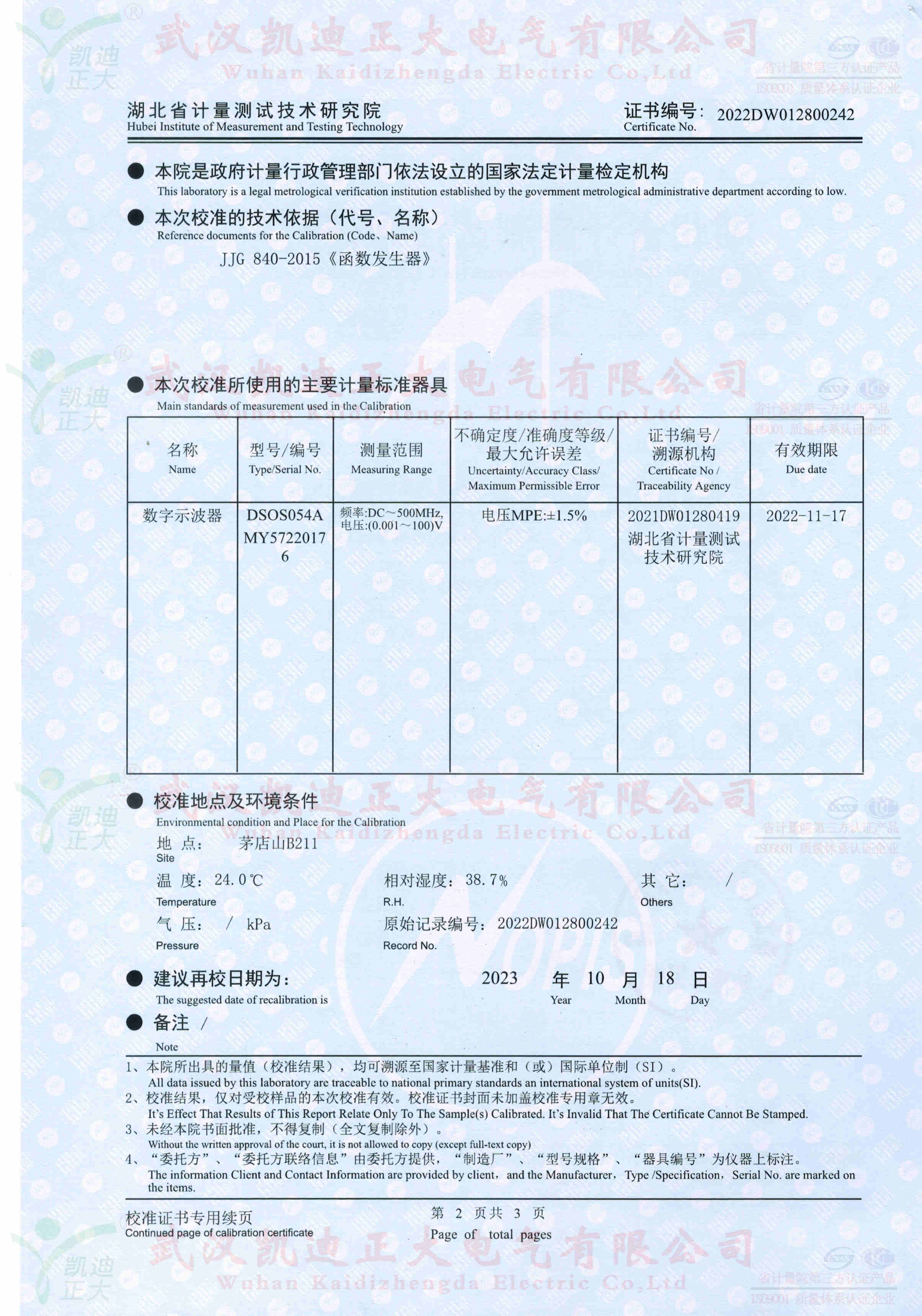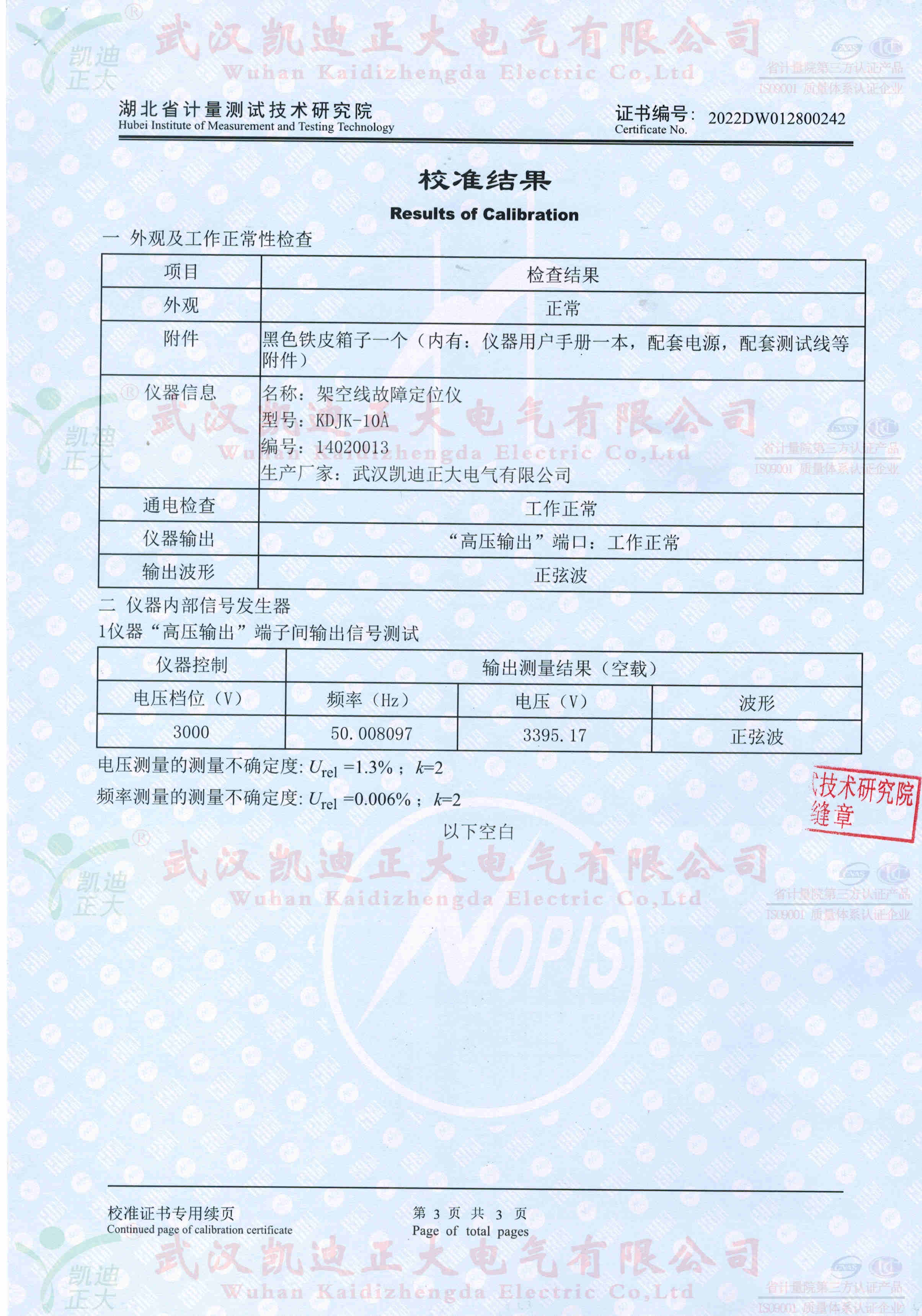 KDJK-10A故障檢測儀特性及技術參數獲得湖北省計量測試技術研究院的校準證書,設備為電力工業電氣設備質量檢驗測試中心的要求。計量設備的高壓測試輸出的電壓、波形正玄波、電壓檔位的選擇。