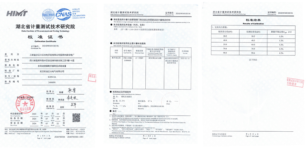 近日三峽金沙江川云水電開發(fā)有限公司宜賓向家壩電廠訂購的我司KDJS-8A全自動(dòng)絕緣靴手套耐壓試驗(yàn)裝置,設(shè)備順利通過了湖北省計(jì)量測試技術(shù)研究院的嚴(yán)格檢測。
