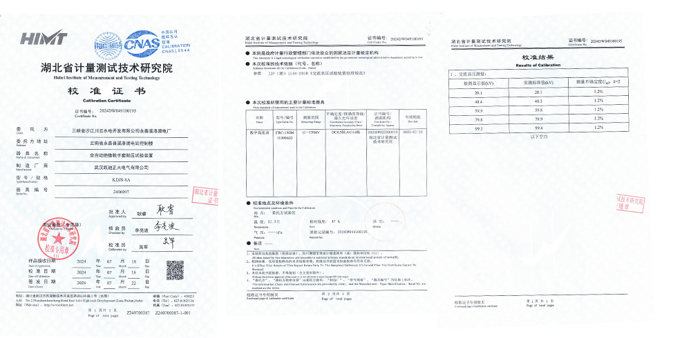 近日從湖北省計量測試技術研究院傳來喜訊,三峽金沙江川云水電開發有限公司位于云南省永善縣的溪洛渡電廠,所購置的我司KDJS-8A全自動絕緣靴手套耐壓試驗裝置,已成功通過該研究院的檢測與校準。