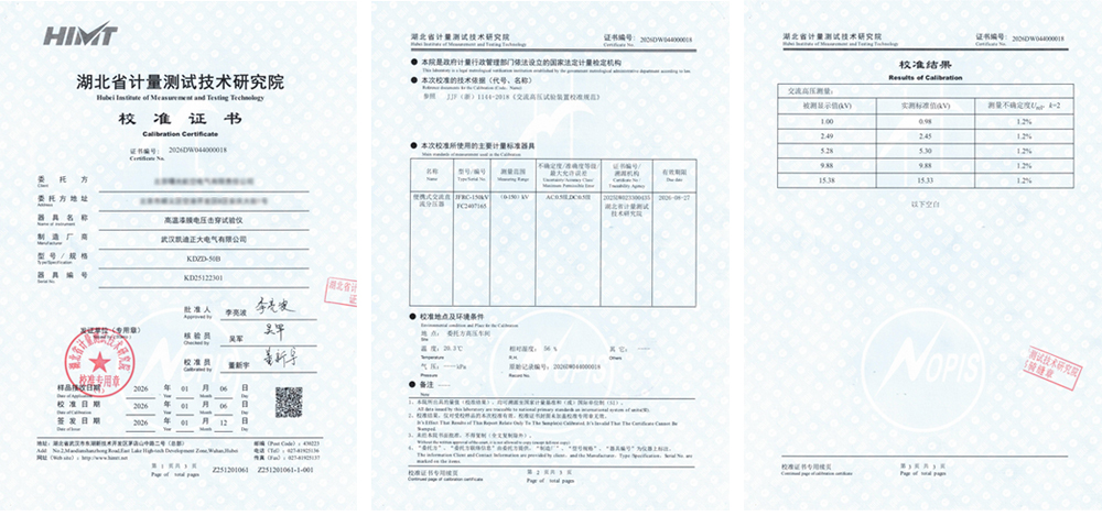 在航空電氣等高精尖制造領(lǐng)域,生產(chǎn)設(shè)備的測量準(zhǔn)確性與可靠性直接關(guān)系到最終產(chǎn)品的性能與安全。近日,由武漢凱迪正大電氣有限公司生產(chǎn)、北京某航空電氣有限責(zé)任公司使用的高端檢測設(shè)備——KDZD-50B型高溫漆膜電壓擊穿試驗儀,在湖北省計量測試技術(shù)研究院完成了校準(zhǔn),并獲發(fā)編號為2026DW044000018的校準(zhǔn)證書。這一過程不僅是企業(yè)質(zhì)量控制中的常規(guī)環(huán)節(jié),更是國產(chǎn)高端試驗儀器精準(zhǔn)性、可靠性與可溯源性的一次有力驗證,體現(xiàn)了凱迪正大在關(guān)鍵檢測裝備領(lǐng)域計量保障能力的不斷提升。