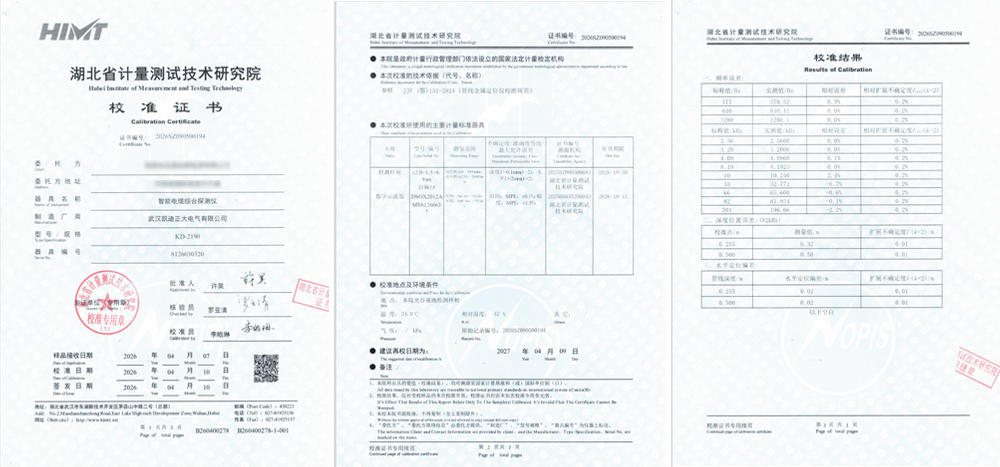 獲得省計量院校準(zhǔn)證書—KD-2190智能電纜綜合探測儀,賦能管線運維全場景